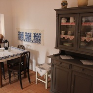 Az épület az 1920-as években épült, a benne található bútorokat a helyiek ajándékozták a leendő tájháznak. A polgári házat a környéken „Énekes-ház” néven említik, mert a Sopronban élő jó módú Énekes család építette, akik kántorként dolgoztak Sopronkövesden. A felső szobában egy tisztaszobát rendeztek be, amelyben a festett bútorok rábaközi mintával díszítettek. A textilanyag szintén a rábaközi motívumkincset mutatja be, melyet a helyi hímzőkör készített el a tájház számára. A szoba előtt található helyiségben Mentes Tibor, sopronkövesdi cipész hagyatéka látható. A hátsó épületrész szoba-konyha-kamra beosztású. A belső szobában és konyhában a családi élettér látható berendezve. A kisméretű istállóban feltehetően lovakat és szarvasmarhákat tartottak. A szekértárolóban különböző mezőgazdasági eszközök láthatók, valamint a funkciónak megfelelően egy szekér is.