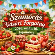 A Szamócás Vásári Forgatag 2026. május 16-án várja a látogatókat a lajosmizsei Iskola-tónál, ahol a térség legkiválóbb termelőinek friss, zamatos szamócája kerül a középpontba. A közel 100 elhivatott gazda egész éves munkájának gyümölcseként a látogatók a legjobb minőségű szamócát kóstolhatják és vásárolhatják meg közvetlenül a termelőktől. A kézműves vásár mellett színes programkínálat – helyi fellépők, ügyességi játékok, kézműves foglalkozások, csillámtetoválás, vendéglátás és ugrálóvár – biztosítja az egész napos családi kikapcsolódást.