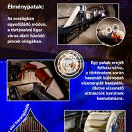 Eger legendás érseki pincerendszerében a vezetett túrák során a pincén keresztül folyó patak vizének erejét felhasználva, különböző vízkerekek és vízemelő attrakciók kerülnek bemutatásra. A pincerendszer az Egri Érseki Palota része, a bejárata a múzeum hátsó kertjéből nyílik. A pince hőmérséklete állandóan 12 Celsius fok, ezért meleg ruha, pulóver ajánlott.