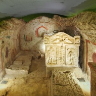 1975-ben bukkantak rá az Ókeresztény Mauzóleumnak nevezett épületre Pécsett. Ez a temetői kápolna egyike Sopianae nagyobb épületeinek. A sírkamra eredetileg egy festett helyiségből állt, amelynek déli oldalán állt a hatalmas, gyönyörűen faragott szarkofág. Később a sírkamrát nyugati irányban megnagyobbították és két újabb szarkofágot helyeztek el benne. A sírkamra festményei részben felületkitöltő díszítések, részben pedig figurális ábrázolások.