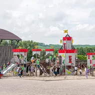 Izgalmas lovagi tornák, a látványos csatajelenetek és a mozgalmas ügyességi lovasbemutatók helyszínéül szolgáló lovagi küzdőtér nem mindennapi élményekkel szolgál a látogatóknak. Egyszerre akár ezer ember is láthatja, amint az Élménybirtok fő attrakciójaként a korabeli lovagok egymásnak feszülnek a Lovagi küzdőtér talaján, s a nézőtéren helyet foglaló publikum kegyeiért birokra mennek egymással.